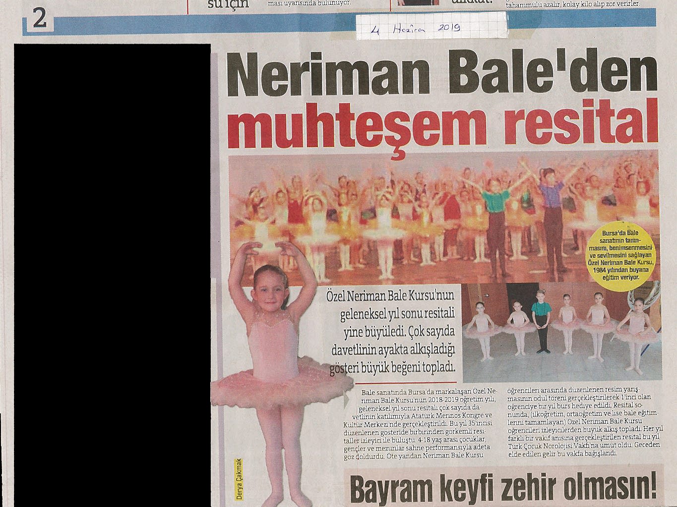 Yaşamı danslarıyla yorumladılar… Özel Neriman Bale Kursu öğrencileri tarafından gerçekleştirilen ‘Bale Resitali’,genç dans tutkunlarının yeteneklerini gözler önüne serdi.