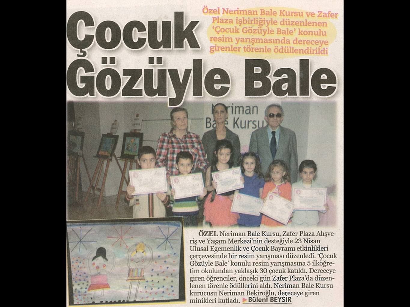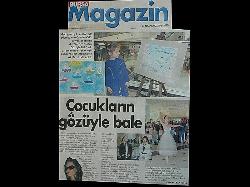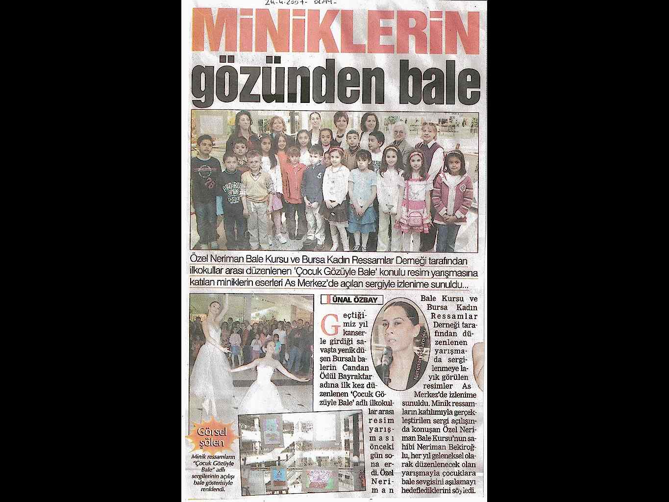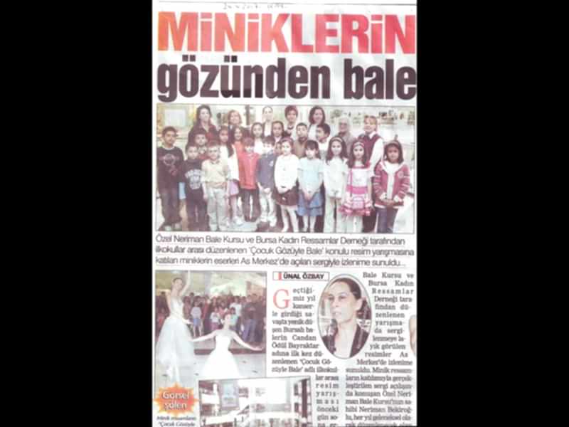 Miniklerin Gözünden Bale Bursa Kadın Ressamlar Derneği ,Özel Neriman Bale Kursu ve Zafer Plaza tarafından düzenlenen ‘Çocuk Gözüyle Bale’ resim yarışmasına katılan miniklerin eserleri As Merkez’de açılan sergi ile izlenime sunuldu.