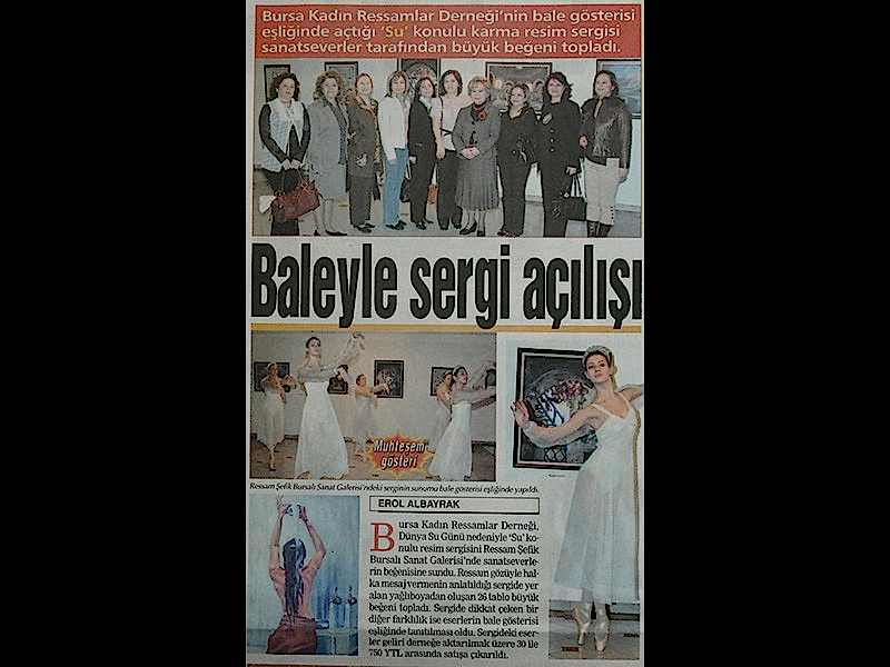 Baleyle Sergi Açılışı Bursa Kadın Ressamlar Derneği’nin bale gösterisi eşliğinde açtığı “Su” konulu karma resim sergisi sanat severler tarafından büyük beğeni topladı.