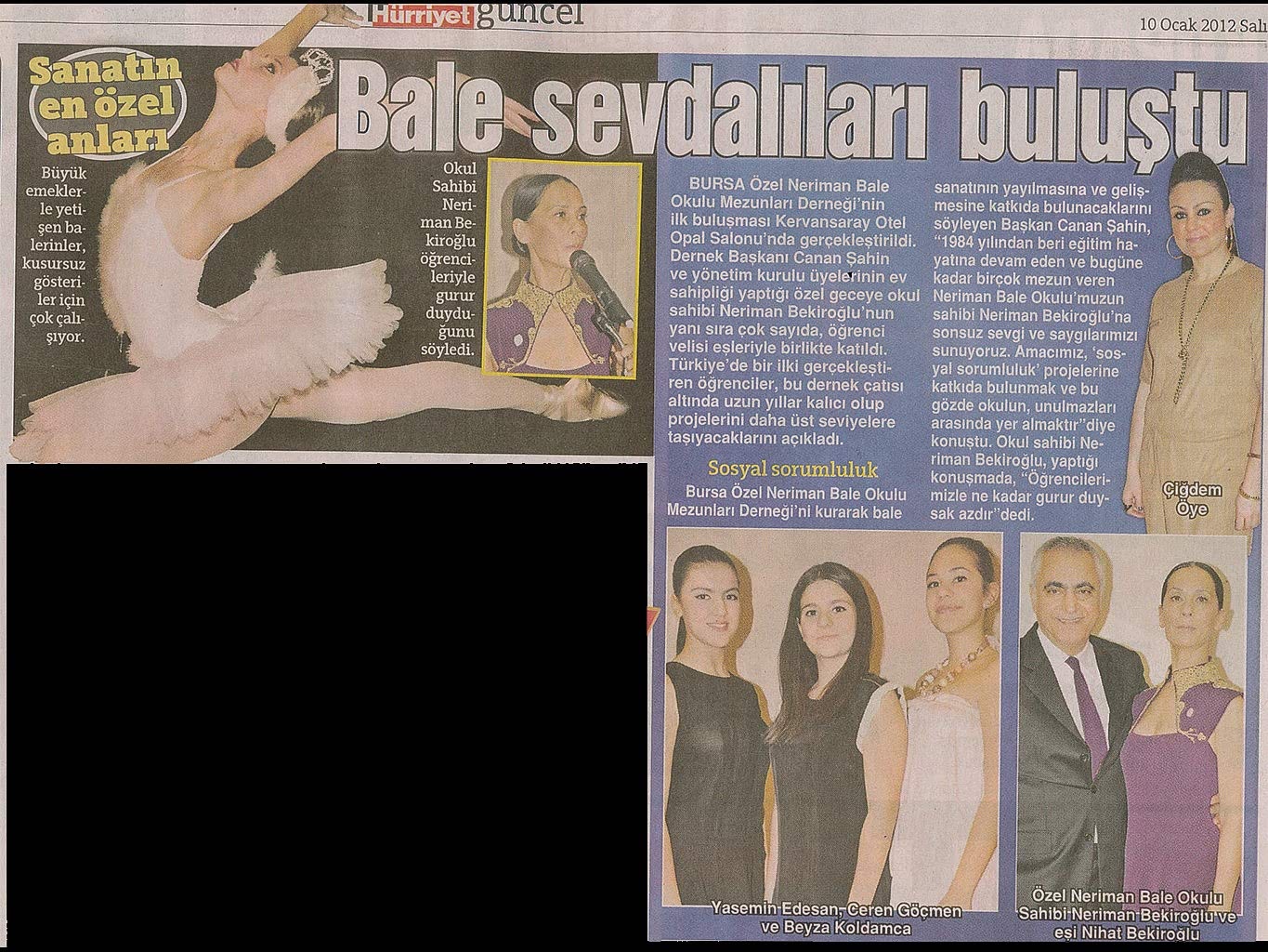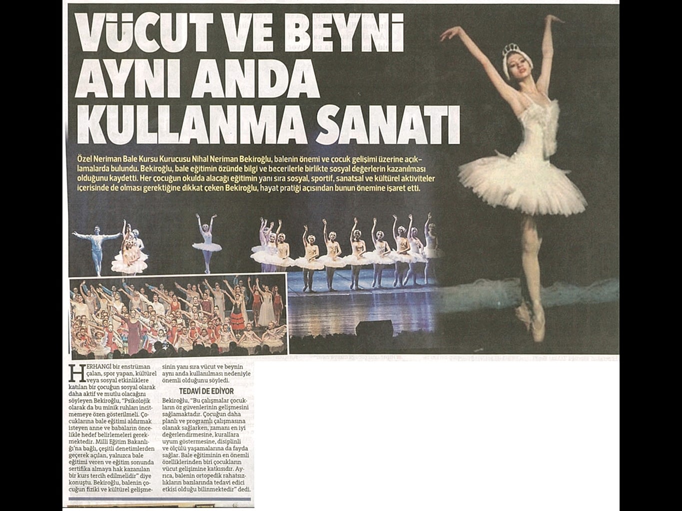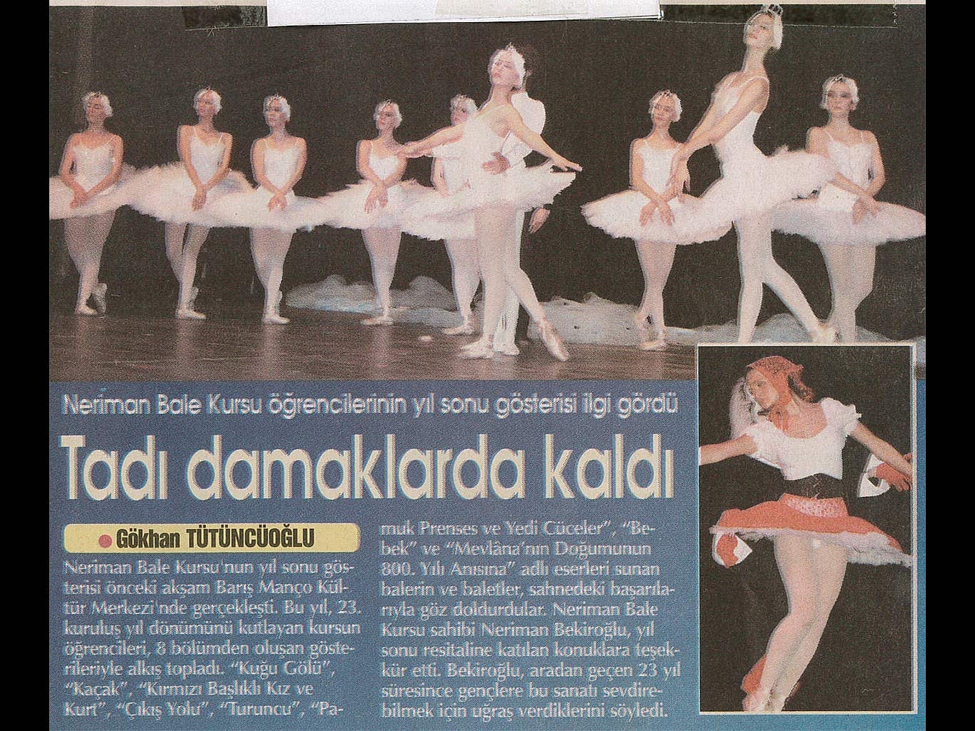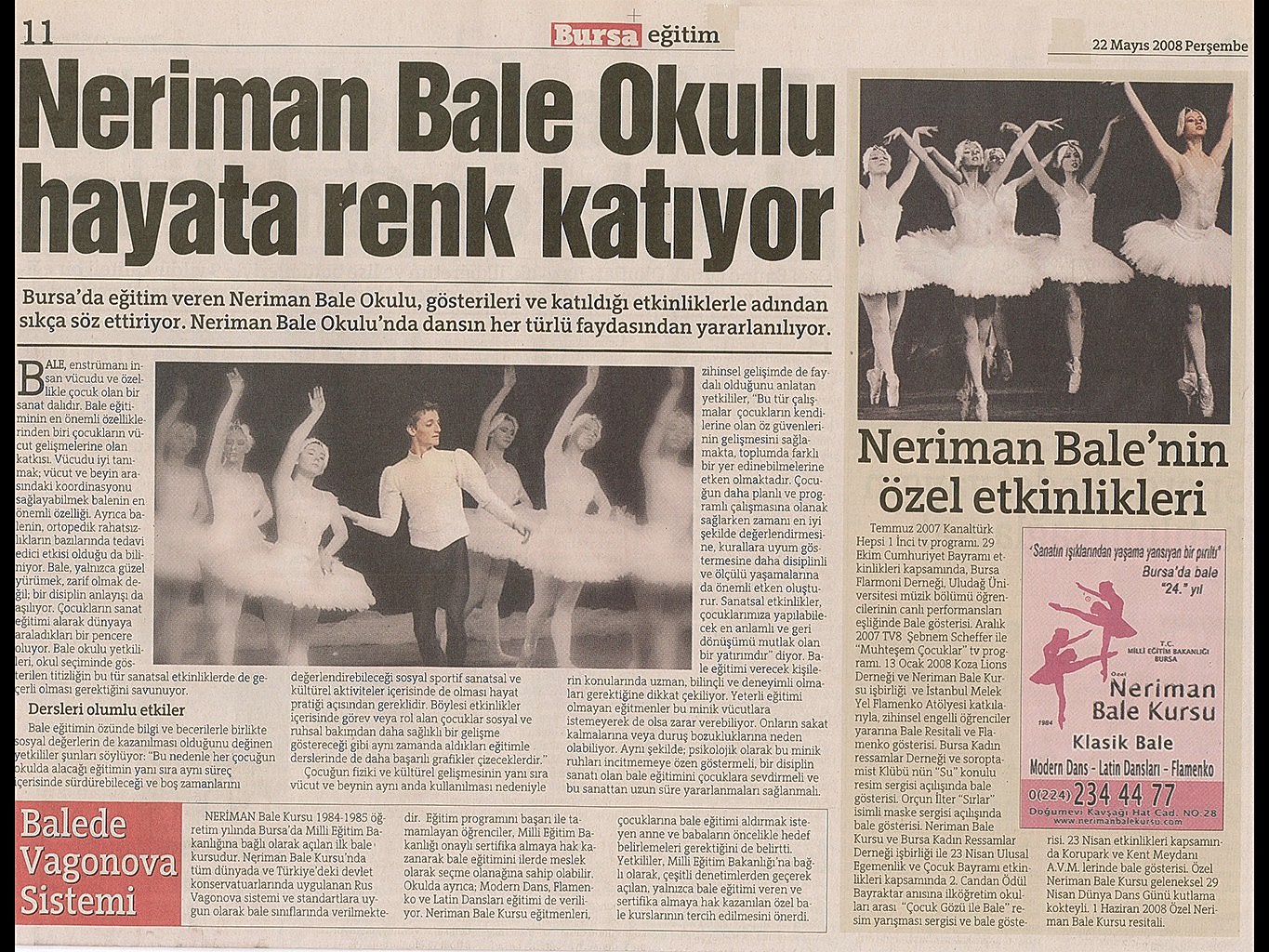 Sanatın ışıklarından, yaşama yansıyan bir pırıltı ‘Bale’… 1984-1985 öğretim yılında Bursa’da Milli Eğitim Bakanlığı’na bağlı olarak açılan ilk bale kursu olan ‘Neriman Bale Kursu’ yetiştirdiği öğrencilerin başarısı ile gurur duyuyor