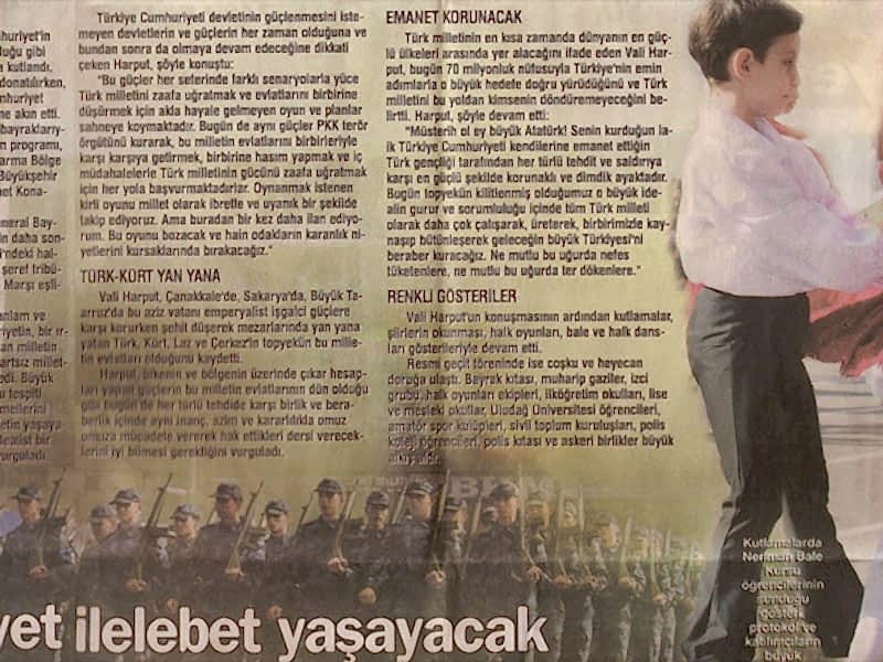 En Büyük Coşku 10 bin kişinin katıldığı Cumhuriyet törenleri şölene dönüştü.Dans gösterileri ve geçiş törenleri ile renklenen kutlamalarda konuşan Vali Nihat Canpolat “Sabrımız taşarsa Türk’ün gazabından kurtulmak mümkün değil” dedi.