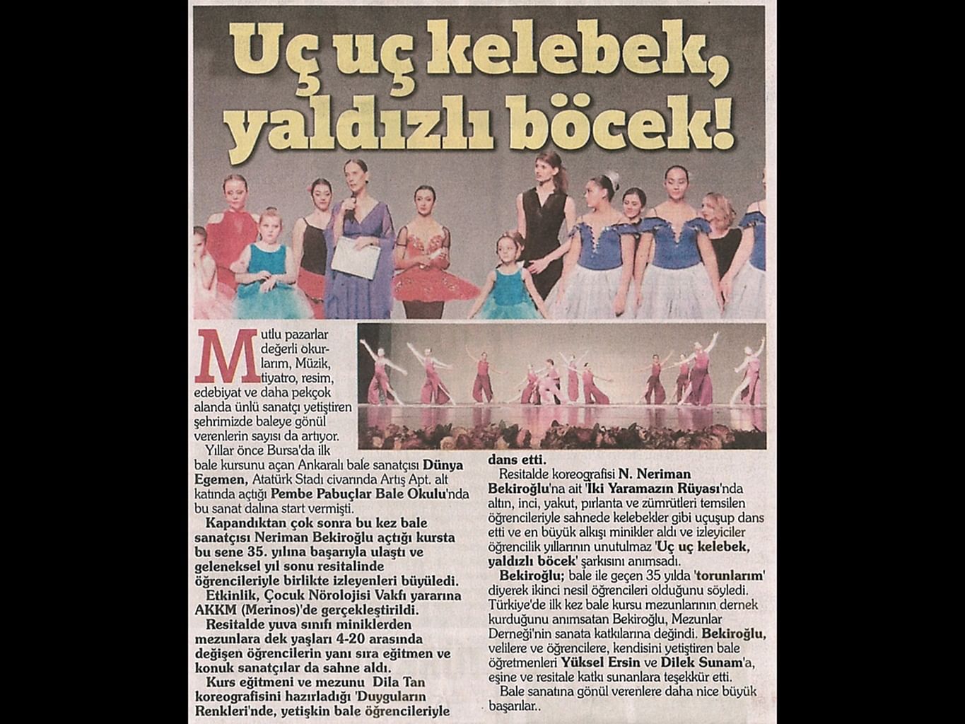 Yaşayan Bursa Neriman Bale’den yıl sonu resitali Bursa’da dans ve bale denildiğinde ilk akla gelen adres olan Neriman Bale Kursu geride bıraktığı yaklaşık 24 yılda gerçekleştirdikleri ile kentin kültür yaşamında önemli bir figür oldu.